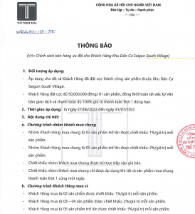 Khách hàng mua từ 2 căn CK 1% – Mua từ 5 căn CK 3%