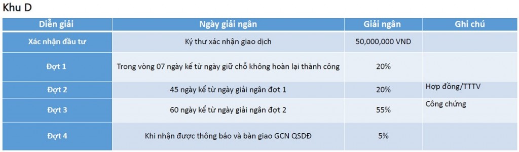 Tiến độ thanh toán khu dân cư Saigon South Village được chia thành 4 đợt linh hoạt giúp khách hàng dễ dàng thu xếp dòng tiền. Vietcombank cho vay 80%.